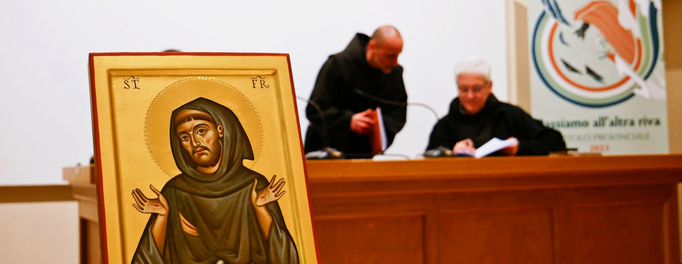 "Scendere, fermarsi, sognare". Tre verbi difficili, tre passi di vita che il Ministro provinciale fr. Luciano De Giusti auspica per il futuro di questa Fraternità provinciale. La giornata di oggi è infatti destinata alla condivisione della corposa relazione del Provinciale al termine del suo servizio fraterno. Scrive fr. Luciano: "Scendere per ascoltare come Francesco d'Assisi quando incontra i lebbrosi: non li guarisce e scopre, anzi, come sia lui a guarire dalle sue idee e dalla sua superiorità. Fermarsi per comprendere, per stare ed essere compagni di tutti e di tutte, lasciandoci colpire, e magari anche ferire da quanto viviamo. Sognare per camminare; dobbiamo stare in mezzo al popolo, come fratelli e fratelli minori, perché impariamo a dialogare con le diverse realtà in cui siamo inseriti e camminando insieme". Hanno fatto seguito le relazioni dei segretariati di Missione e Evangelizzazione (fr. Paolo Maiello) e Formazione e Studi (fr. Alessandro Ciamei).